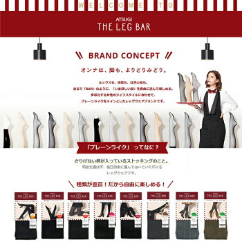 サイズ M〜L(ヒップ:85-98cm、身長:150-165cm) L〜LL(ヒップ:90-103cm、身長:155-170cm) 特徴 ATSUGI THE LEG BAR(アツギ ザ・レッグ バー) 「オンナは、脚も、よりどりみどり。