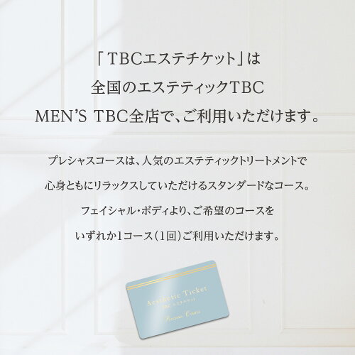 TBC 公式 送料無料 TBCエステチケット「プレシャスコース」(男女共通)|[エステ券 ギフト お祝い プレゼント 全国共通 ご褒美 ブライダル イベント 景品 体験ギフト 記念日 誕生日]【ラッキーシール対応】